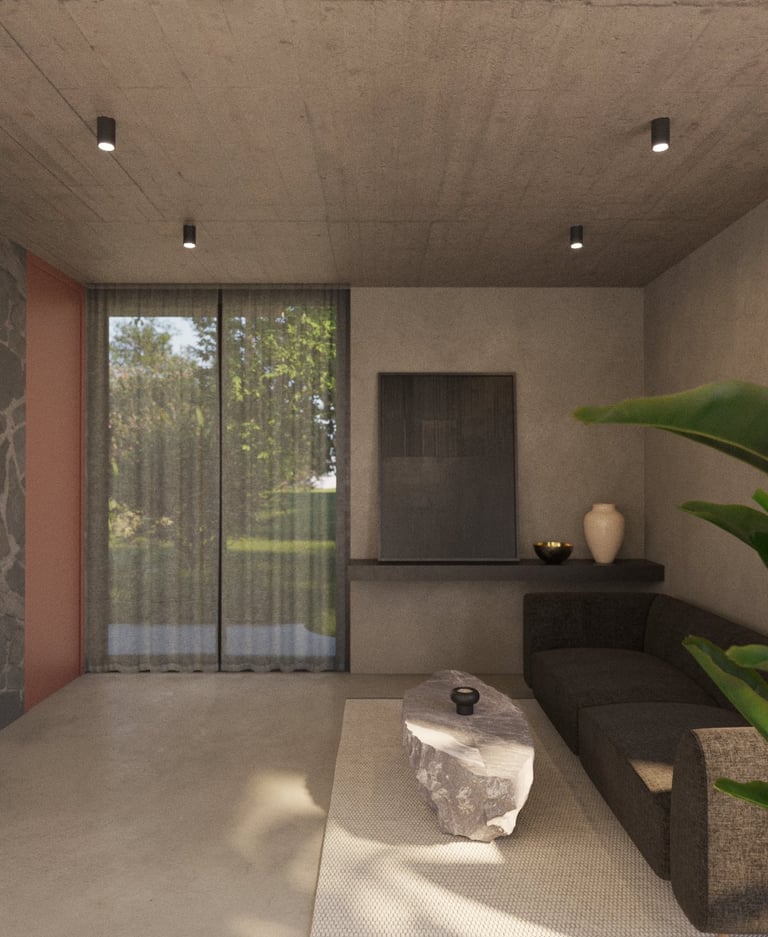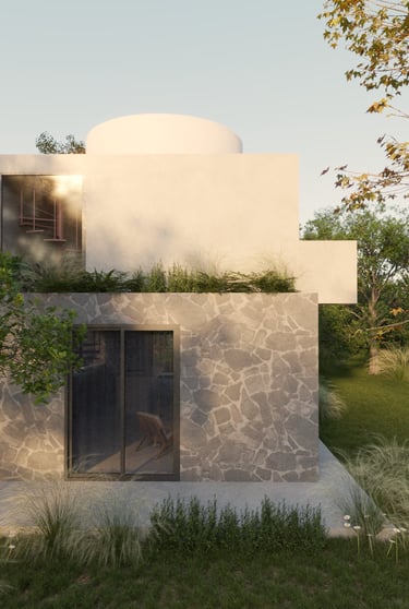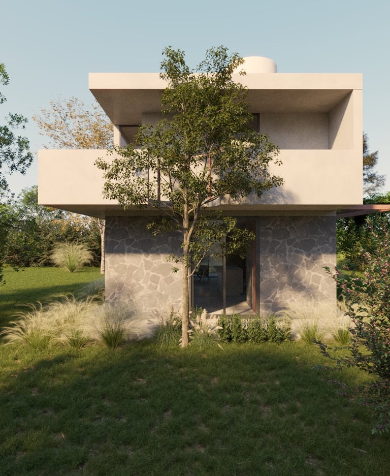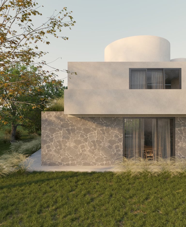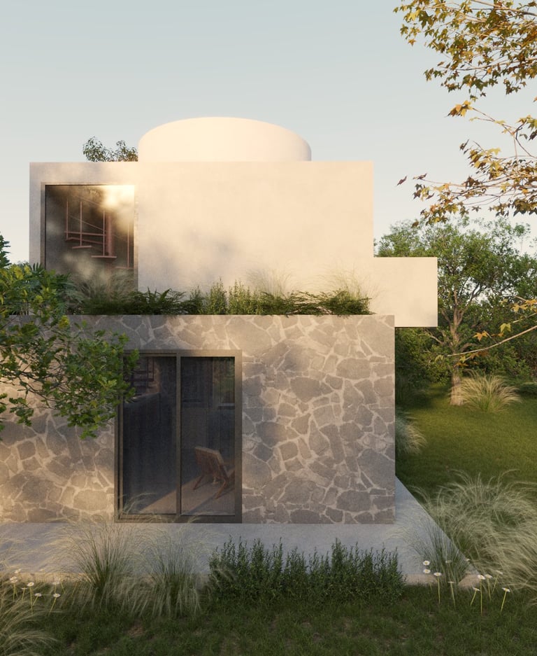 El concepto de Casa Estudio Malva surge de una lectura cuidadosa del entorno natural y de una relación íntima y reflexiva con los deseos del cliente. El proyecto se concibe como una secuencia narrativa, estructurada en tres actos arquitectónicos que responden simbólicamente a distintos planos de la experiencia humana: lo terrenal, lo transitorio y lo celestial.