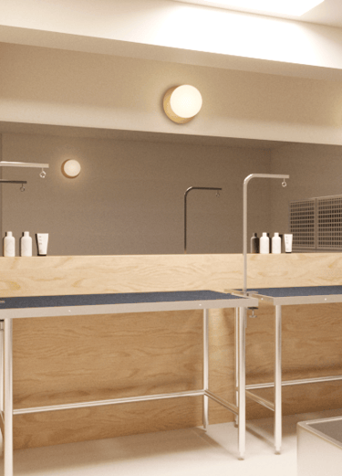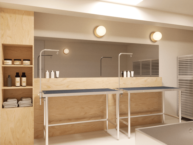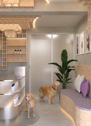 Comprendimos desde el inicio que un espacio clínico para animales no solo debe ser funcional: debe disminuir el estrés, acompañar la recuperación y generar seguridad tanto para las mascotas como para sus cuidadores. A partir de esta premisa exploramos principios biofílicos capaces de influir positivamente en el estado emocional de los pacientes no humanos.